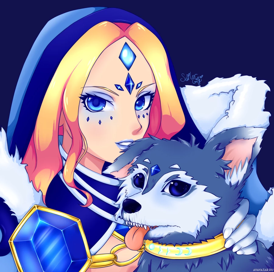 the video game Dota 2. This character is known as Crystal Maiden, and she is depicted with