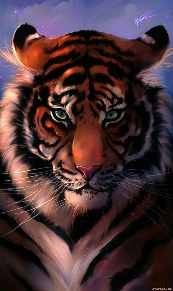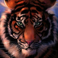 The image shows a close-up illustration of a tiger. It's a detailed and realistic depiction of the animal, capturing its features such as the distinctive stripes on its fur,