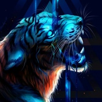 The image features a stylized illustration of a tiger's head. The tiger is depicted with