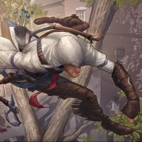 an urban setting typical of Assassin's Creed games, with architectural details suggesting it might be set in a historical city, possibly during one of the game's time periods.