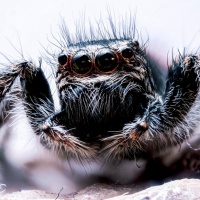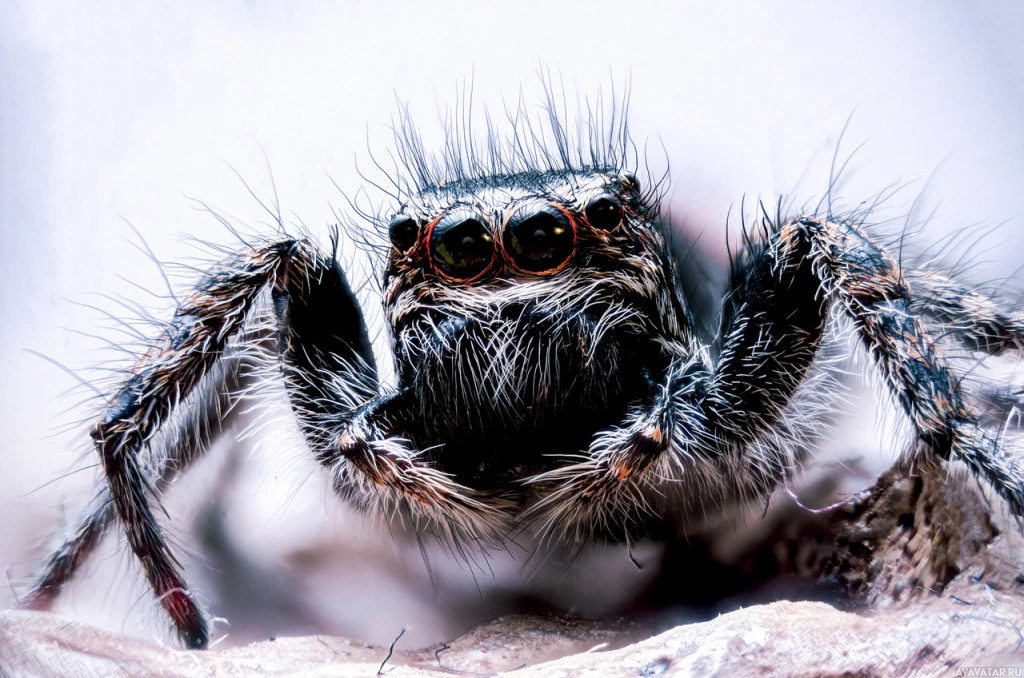 На снимке изображен паук. Он имеет восемь ног и сидит на том, что кажется камнем или другой шероховатой поверхностью. Тело паука покрыто волосовидными структурами, что характерно для многих видов паукообразных.