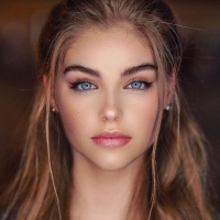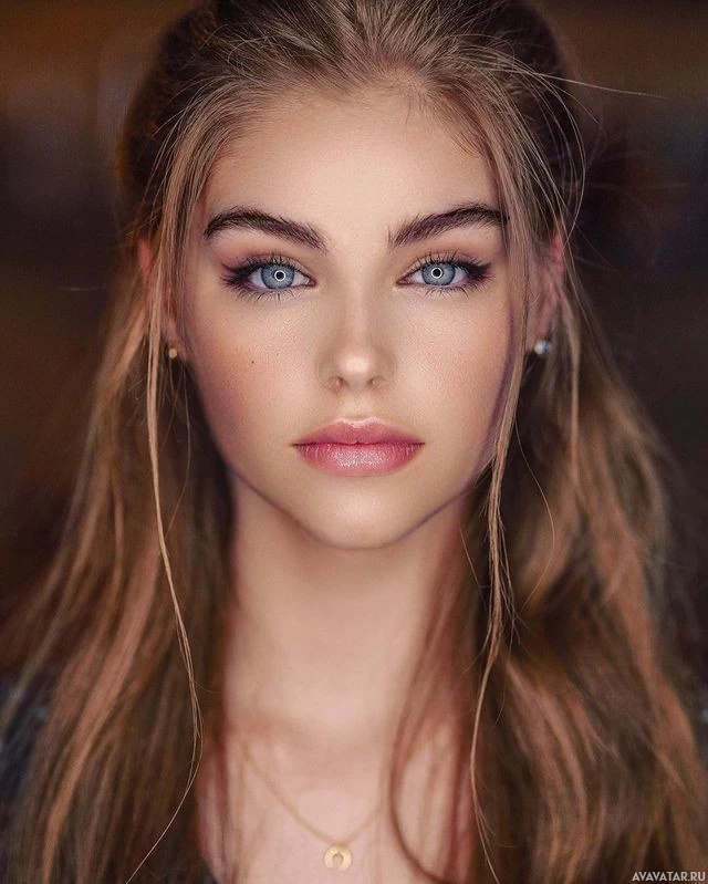 wavy hair that falls over her shoulders, and she is looking directly at the camera. Her makeup is light, emphasizing her