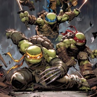 This image depicts a group of the Teenage Mutant