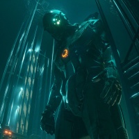 the science fiction genre, featuring a robot character. It appears to be set in an industrial or mechanical environment, possibly a factory or ship, at night with a greenish-