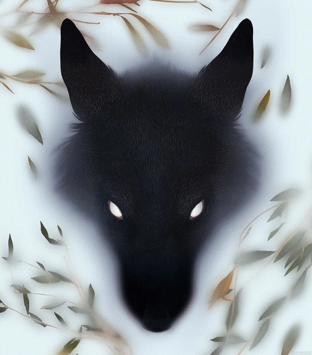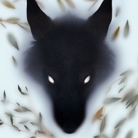leafy branches. The wolf's gaze is directed towards the viewer, giving it an intense and somewhat eerie look. This artistic representation combines elements of nature with the mythical aspect of