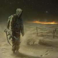 potential threats. The environment suggests a remote or war-torn area, characterized by