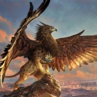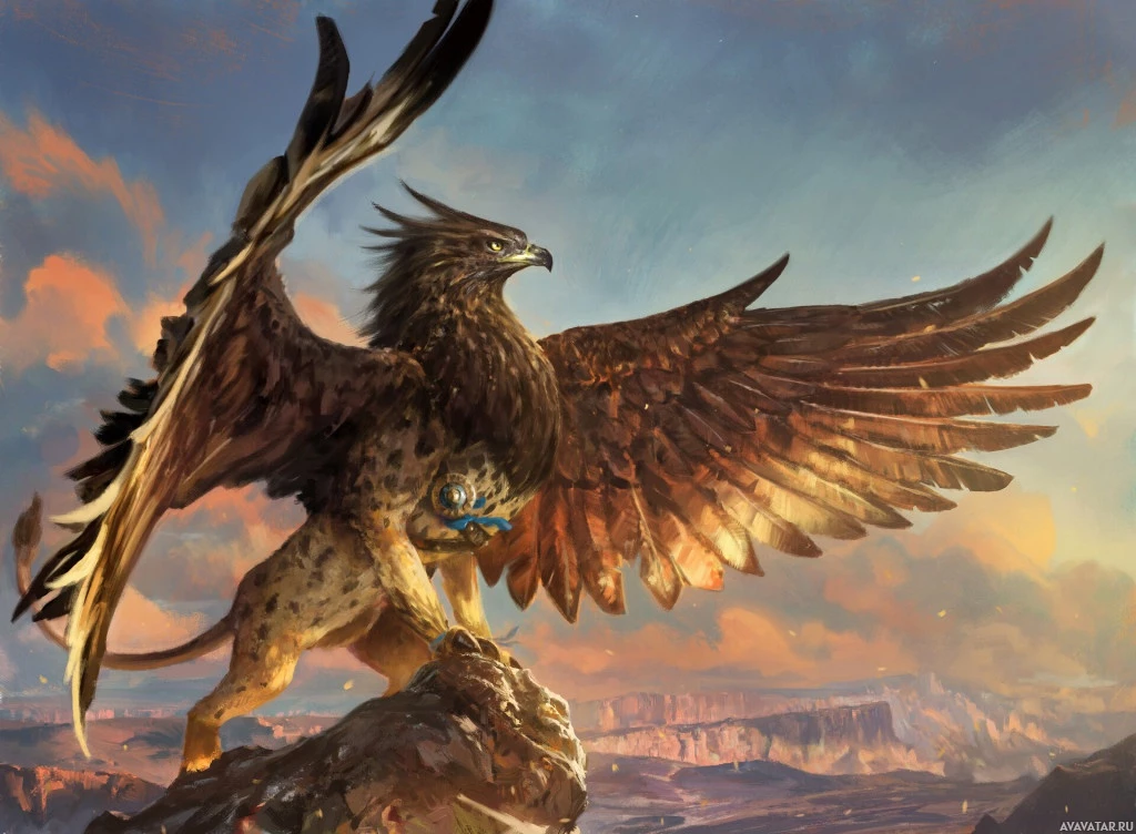the body of a lion and the wings and head of an eagle. The griffon stands majestically on