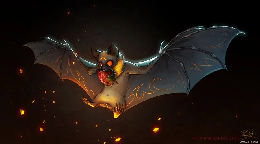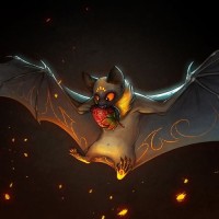 creature with wings and a body structure that resembles a bat. It is also holding an object that appears to be a berry or fruit in its claws, and there are sparks around it, giving the impression that it might be using its magic or