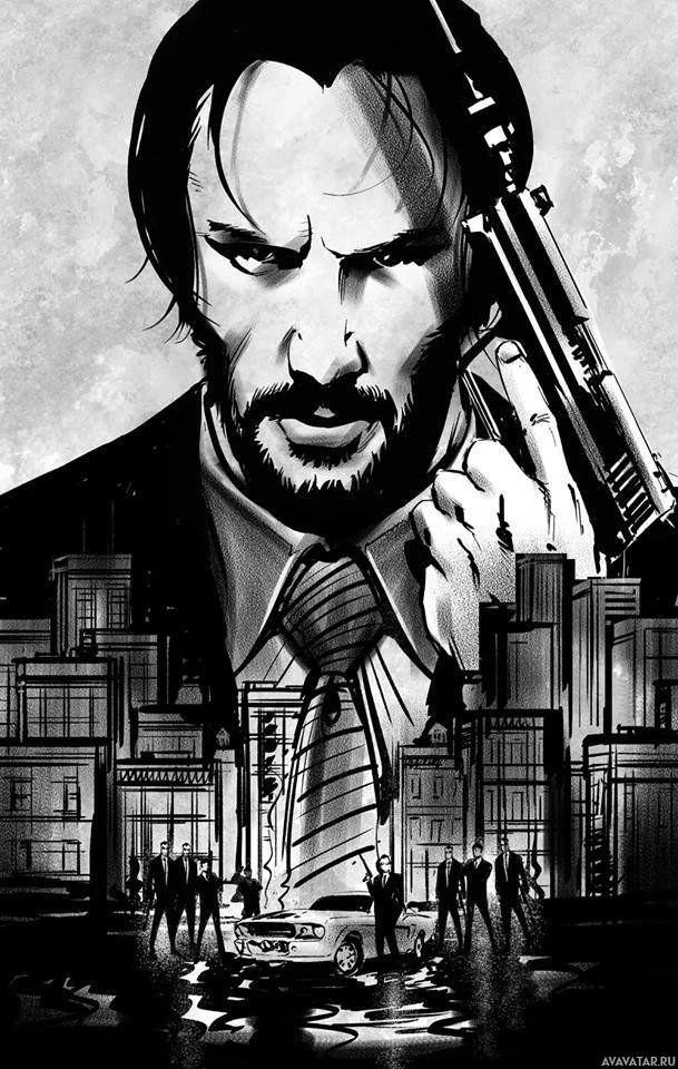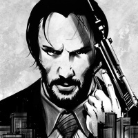 the main character John Wick, a former hitman who seeks vengeance for the killing of his dog and the theft of his car. The artwork captures the intensity and action-