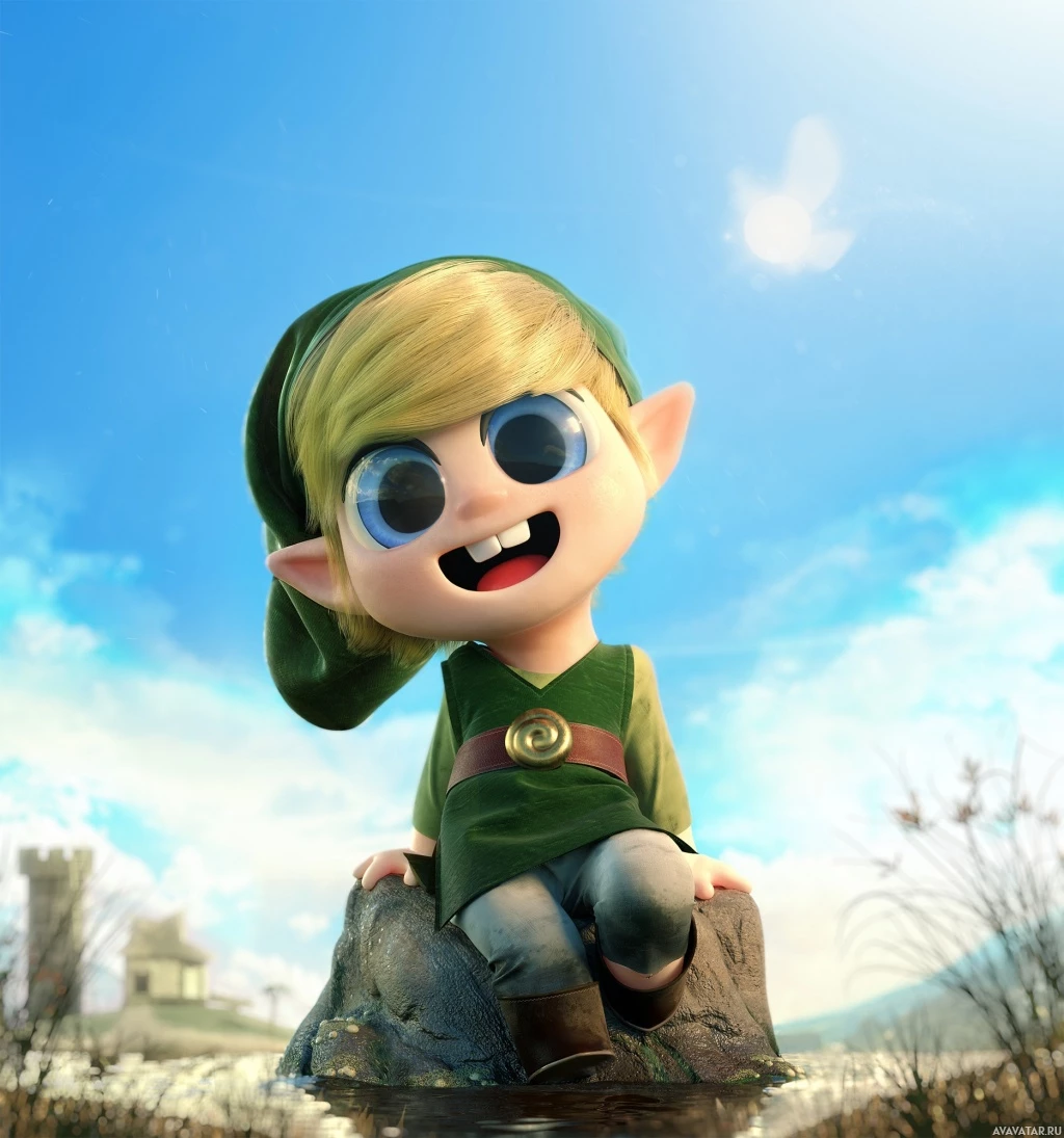 На картинке изображен стилизованный персонаж, напоминающий Линка из видеоигры "Легенда о Зельде: Дыхание дикой природы". Это цифровая иллюстрация с более мультяшным и дружелюбным внешним видом по сравнению с игровым дизайном.