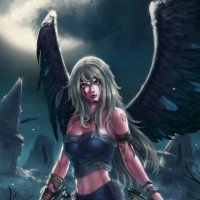 a fantasy character. This character appears to be an angel, as indicated by the wings and other supernatural features. The style suggests it might be from