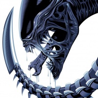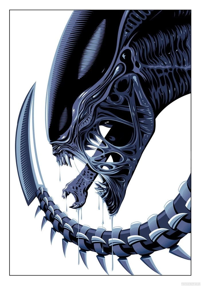 movie franchise. It's an illustration of a humanoid alien known as the Xenomorph, which is famously associated with the horror and