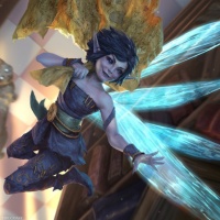 golden accents and possibly magical-looking accessories. The fairy has horns on its head, suggesting it might have an evil or mischievous nature, which is common in