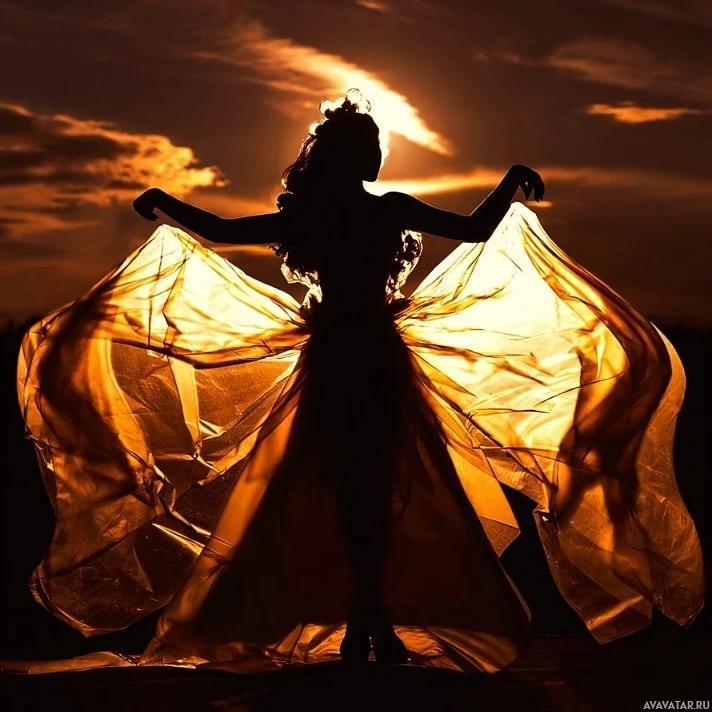 платья | Скачать аватары с платьем | Dresses | Женский силуэт в конце дня, танцующий свободно