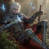 a fantasy world with elements like armor and a sword.