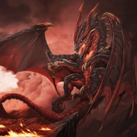 a real event or creature. The dragon has reddish skin with scales, sharp claws and teeth, wings, and