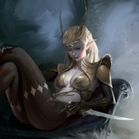 The image depicts an illustrated character that appears to be a female fantasy or elf. She is wearing armor and has wings, which are common features in fantasy illustrations of such creatures. The setting seems to be a cave-like environment with misty surroundings, contributing to the overall mystical atmosphere of the image.