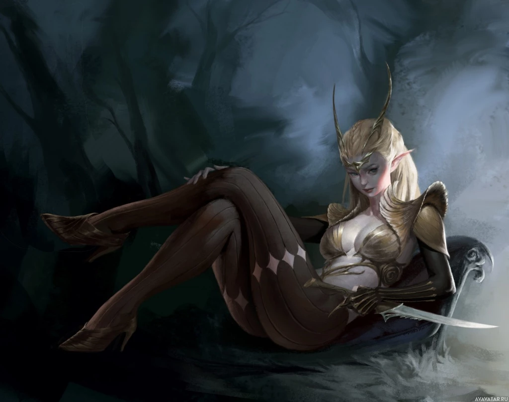 На картинке изображен персонаж, который, по-видимому, является фэнтезийной женщиной или эльфом. Она одета в доспехи и у нее есть крылья, которые часто встречаются на фэнтезийных иллюстрациях таких существ. Место действия похоже на пещеру с туманным окружением, что создает общую мистическую атмосферу изображения.