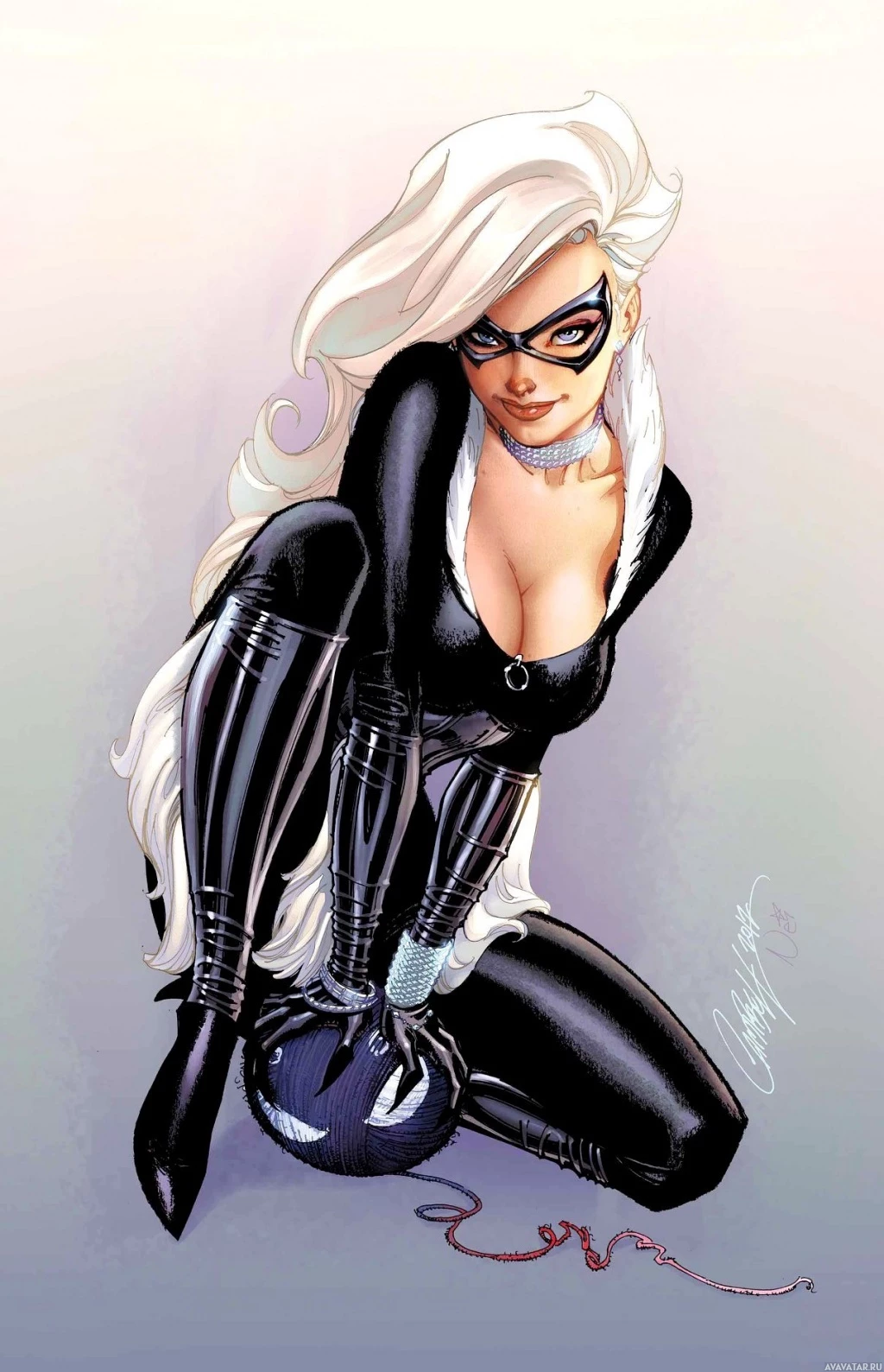 a dynamic pose with one hand on her hip and the other holding a spool of thread or wire, which adds to the allure of her mysterious persona.