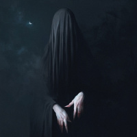 a hooded cloak, which is often associated with horror themes. This character appears to be standing in front of