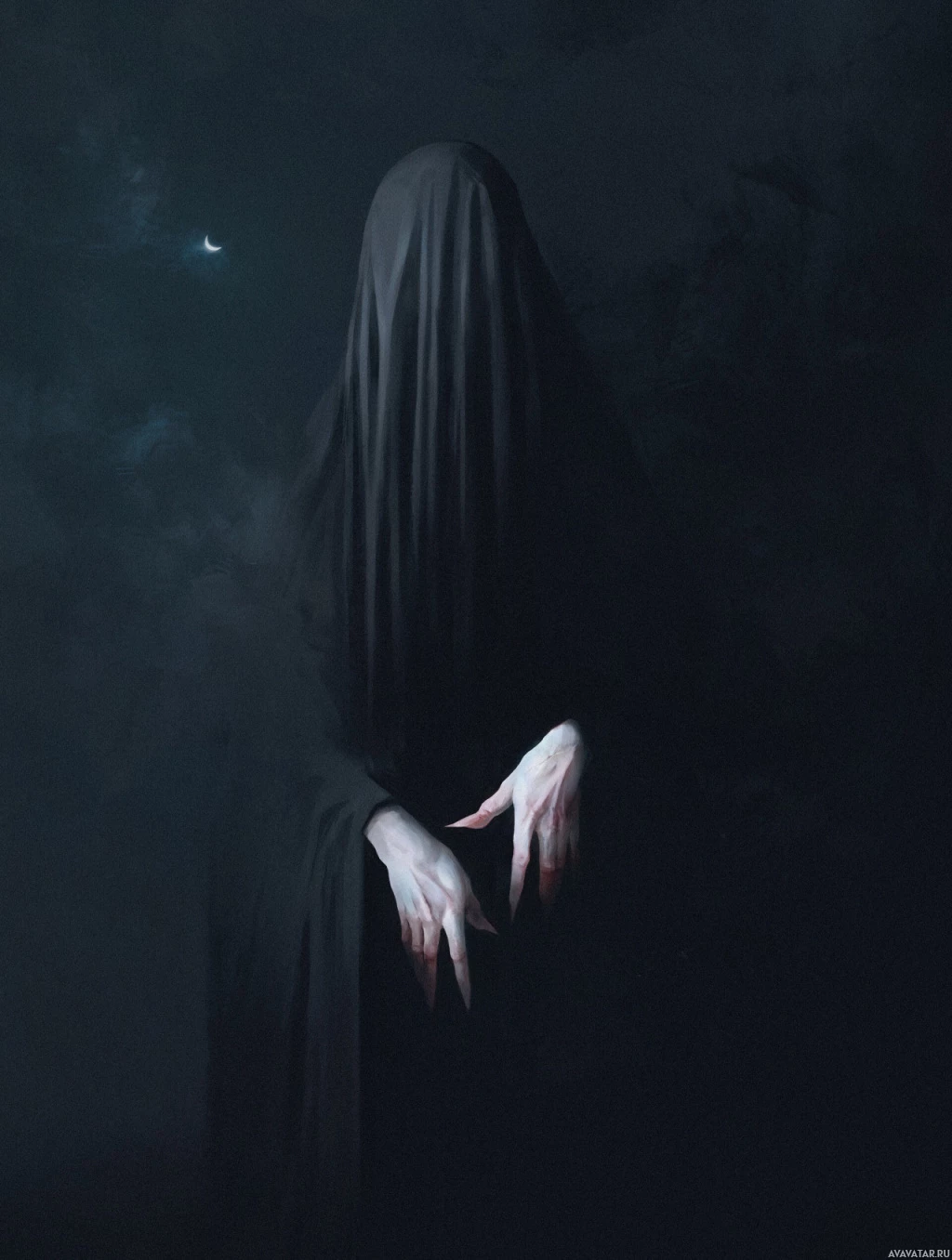 The image depicts a figure shrouded in