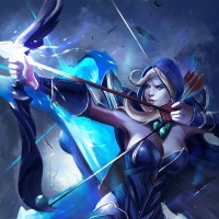 a Drow Ranger, a hero in the game known for her ranged combat abilities and enchanted bow. The character is shown wearing armor with