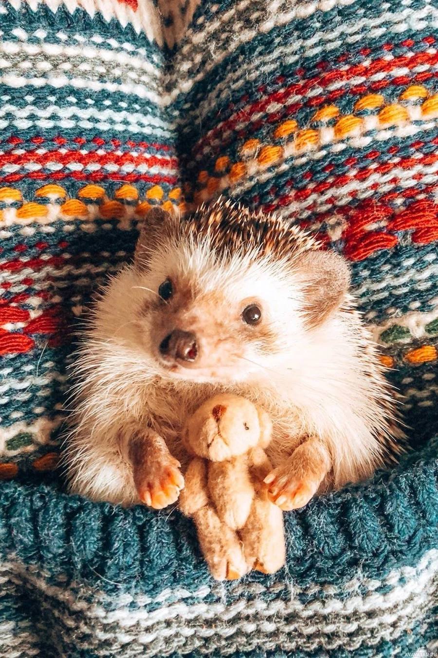 The image shows a hedgehog holding