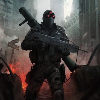 protective gear, including what appears to be a bulletproof vest, helmet, and eyewear that could be a mask or gas mask. They are holding a gun equipped with a scope, indicating they may be in combat or prepared for conflict. The overall theme of the image suggests it could be related to themes of survival, war, or