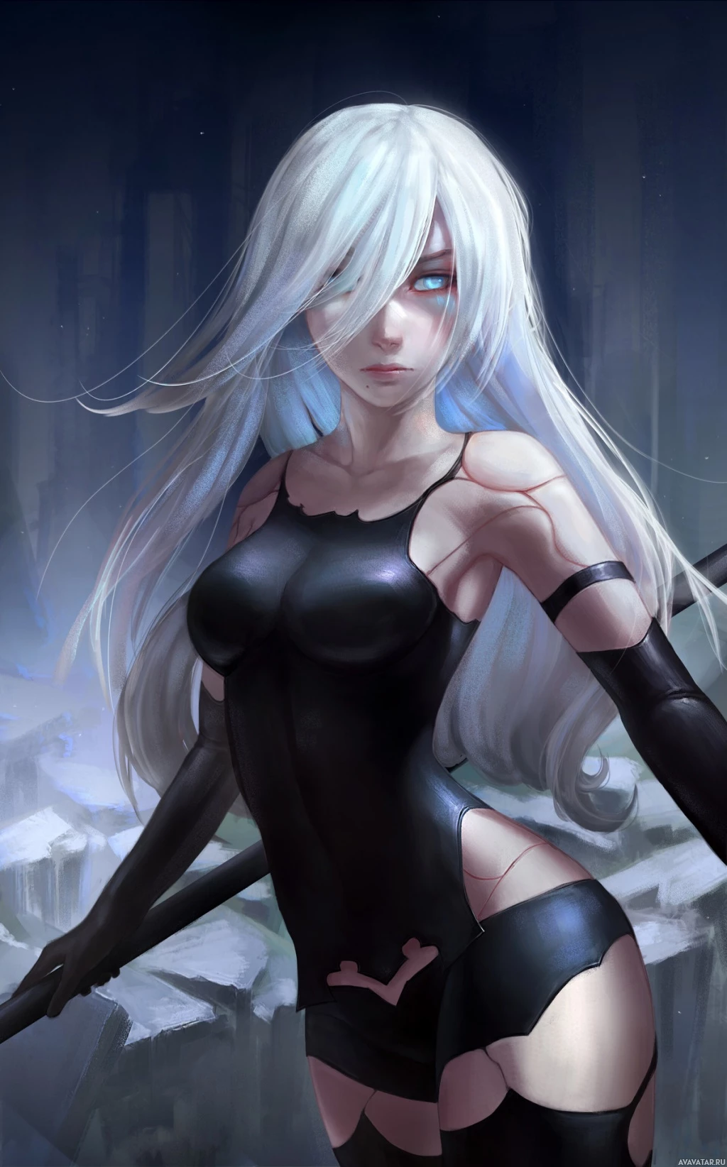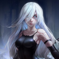 female character that appears to be inspired by the game "Nier: Automata." She has