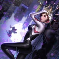 Gwen Stacy from Marvel Comics. The character is also seen holding a web shooter, which is