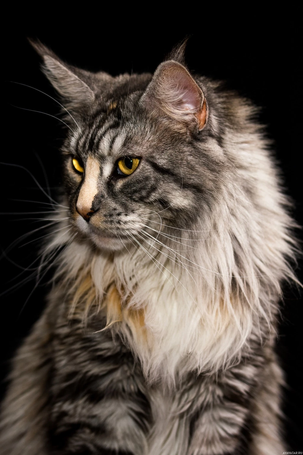 Это изображение животного, в частности кошки. У кошки длинная шерсть и торчащие уши, что говорит о том, что она может быть внимательной или заинтересованной в чем-то, что ее окружает.