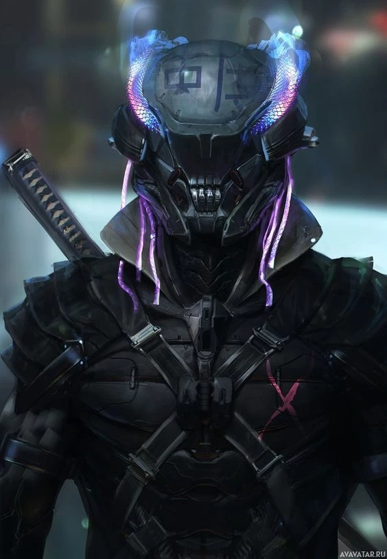 a science fiction context. This is suggested by the futuristic armor, the blend of organic and mechanical elements, and the overall design which evokes the aesthetics commonly found in science fiction media such as