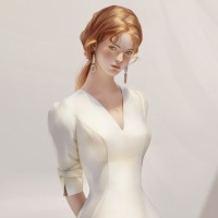 a soft lighting effect that suggests the photo might be taken indoors with natural light coming from one side, illuminating her profile. The overall style of the image is digital art, likely used as concept art for