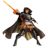 a flame design on the blade. The character appears to be a warrior or a fantasy-themed character due to the armor and sword.