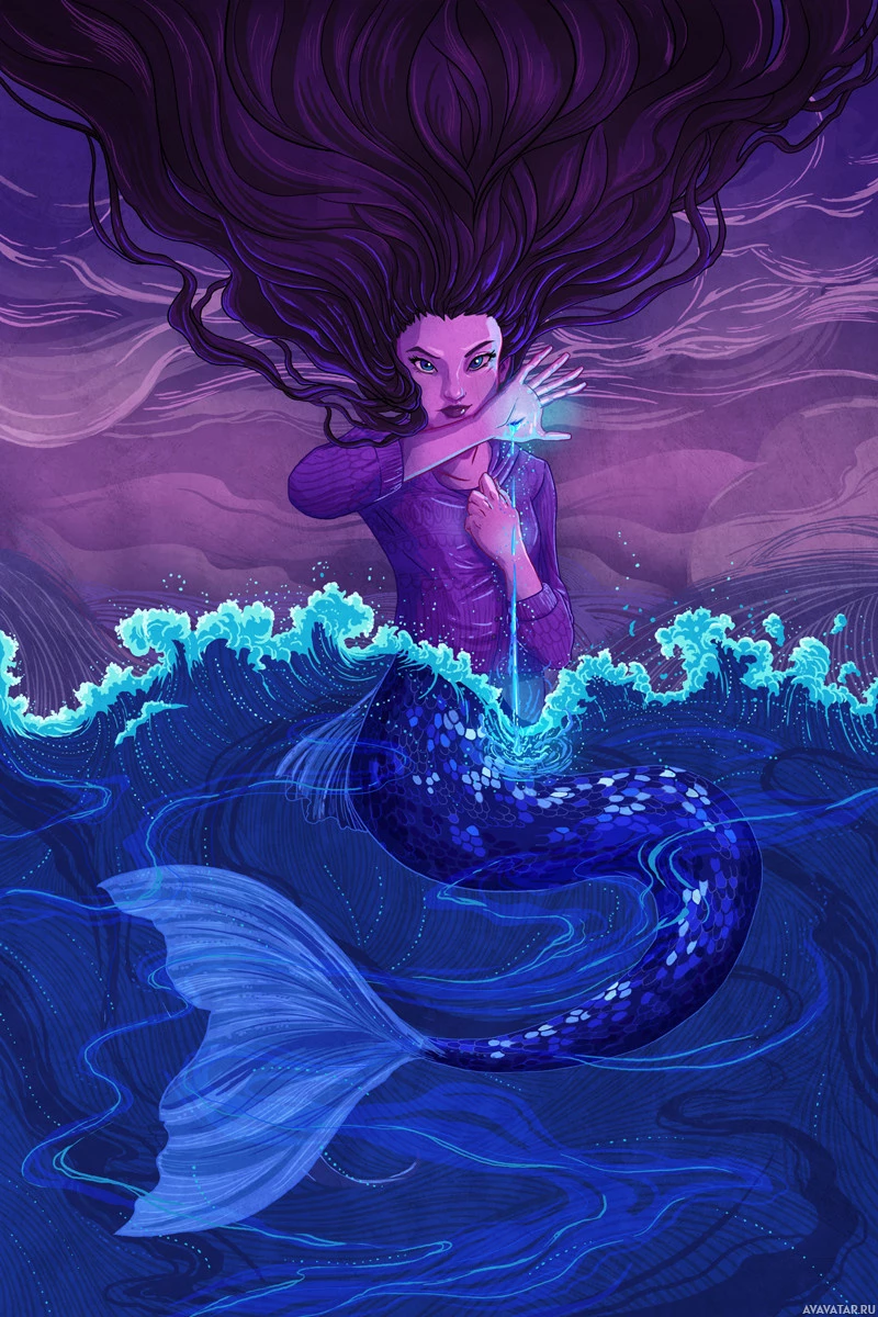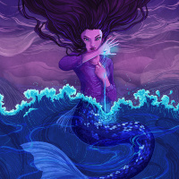 a mythical creature that has the upper body of a human and the tail of a fish. This character is illustrated with