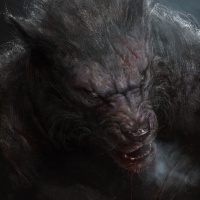 The image depicts a fantasy creature that is commonly referred to as a werewolf. This character is anthropomorphic, with the head of a wolf and the body of a humanoid. It appears to be in a moment of intensity or possibly transformation, given the intense expression on its face and the visual cues suggesting movement. The artwork conveys a sense of raw power and the supernatural nature often associated with werewolves in fantasy stories.