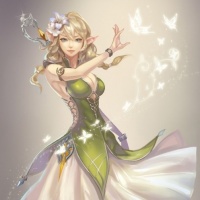 long hair and pointed ears, which are common traits of elves in various mythological and fantasy-themed works. The character is dressed in a flowing outfit with