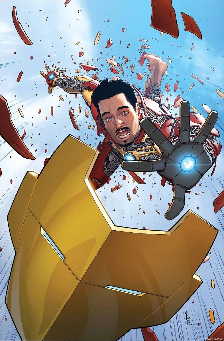 Man suit, also known as Iron Man. The characters are shown mid-air with