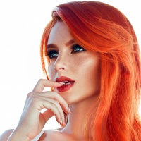 red hair and makeup. They are wearing a top that appears to be inspired by the character of Mary