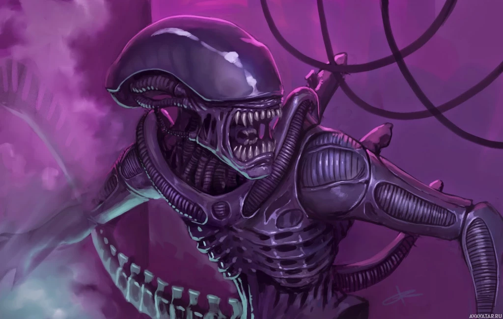 The image depicts a character from the "Alien"