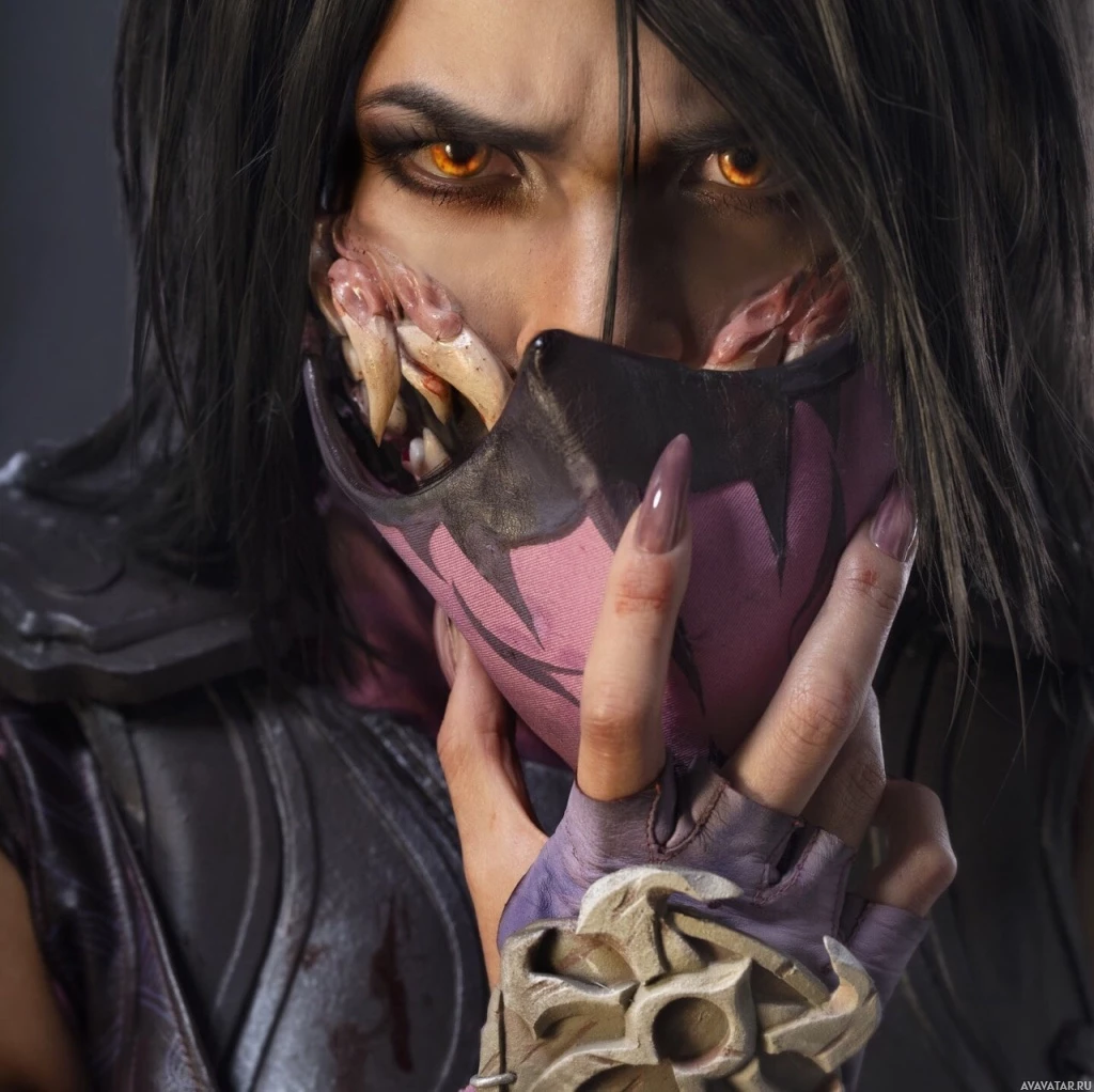 Mortal Kombat" franchise. The character in the image is Mileena, known for her role as a deadly assassin with various abilities and a unique appearance that includes snake-like features such as