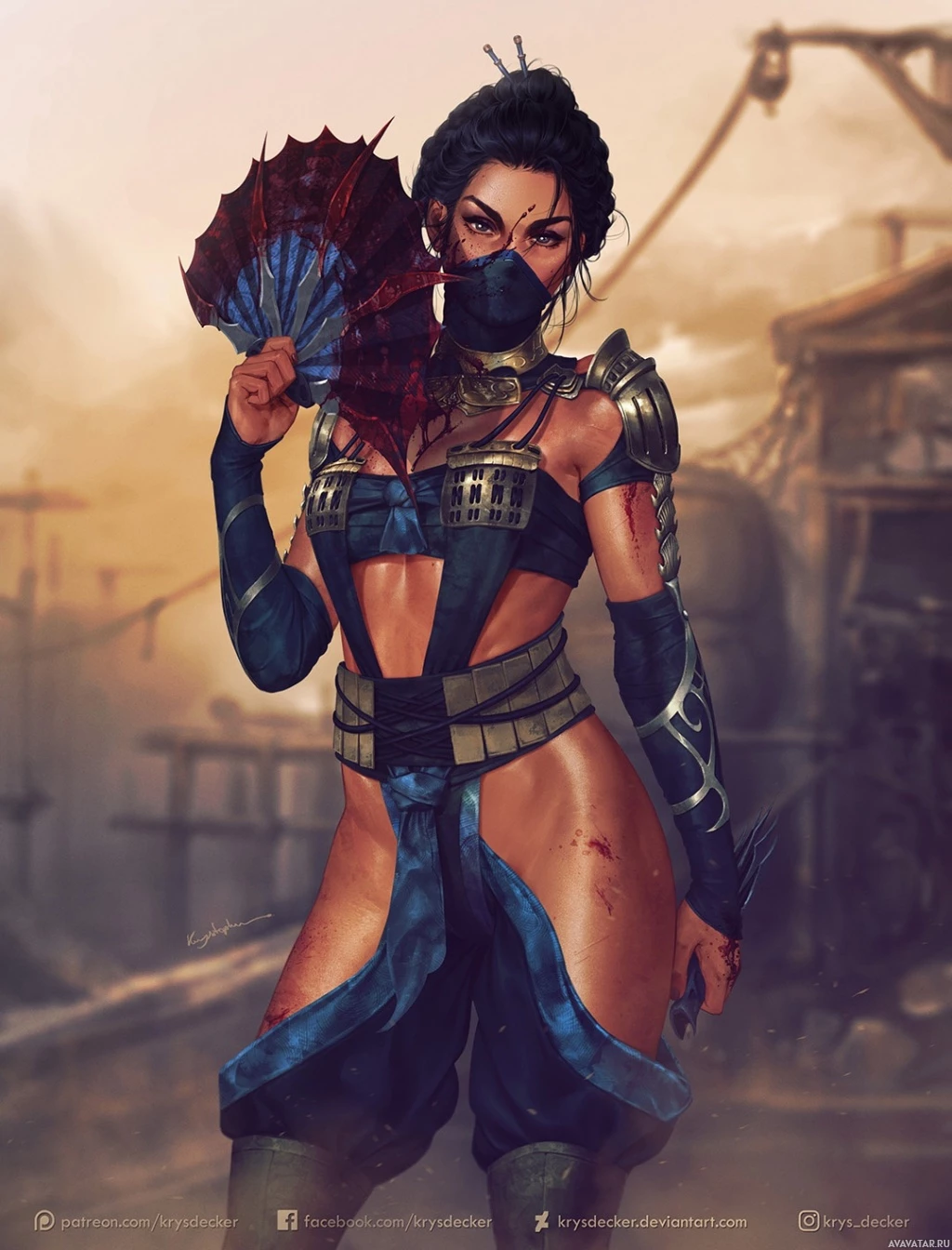a female character in a fantasy setting, likely from the Mortal Kombat video game series. She is wearing traditional Asian
