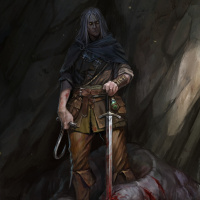 an illustrated character from the "The Witcher" series. This character is depicted as