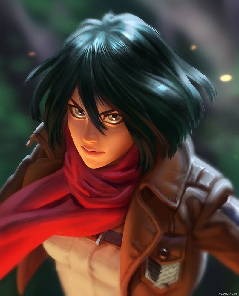 На картинке изображен анимированный персонаж, женщина с темными волосами. Она носит коричневую куртку и имеет красный шарф или бандану, привязанную к ее шее. Ее выражение серьезное, и она, кажется, смотрит в сторону, а не прямо на зрителя. Фон предполагает, что она находится в лесоподобной среде, возможно, из фантастической обстановки.