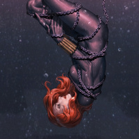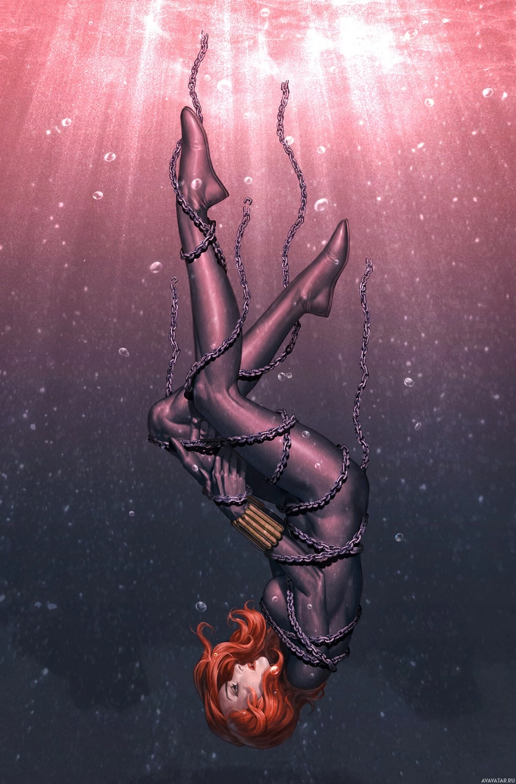 the impression of water, possibly indicating that she's underwater. This image is likely related to comics or