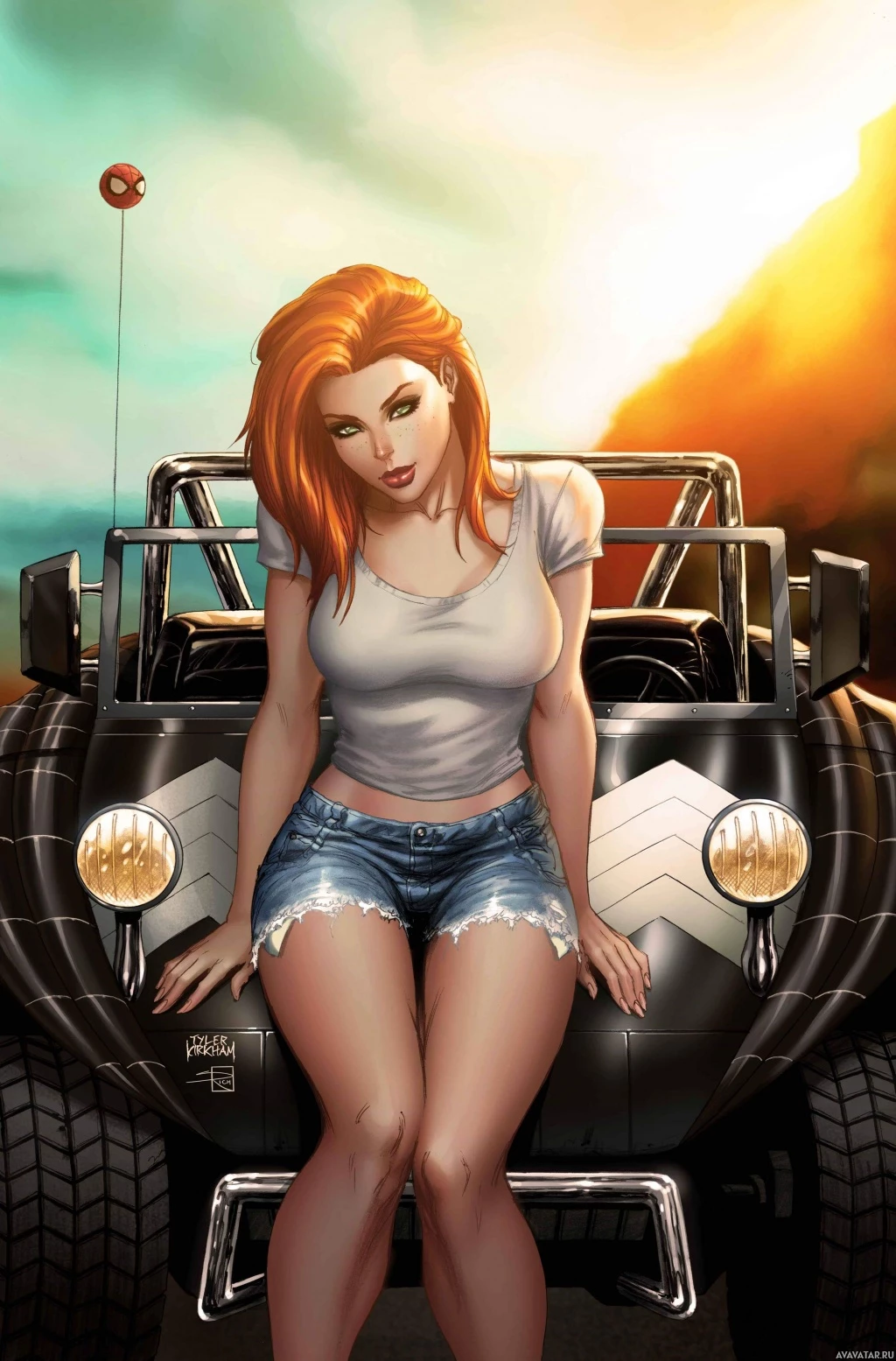 casual clothing, including shorts, which aligns with her typical appearance in the Spider-Man series.