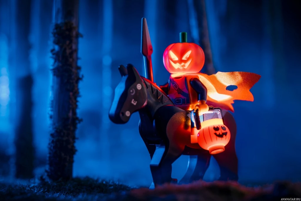 a Lego rider set up to appear as if it is riding a horse. The rider is dressed in a traditional
