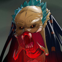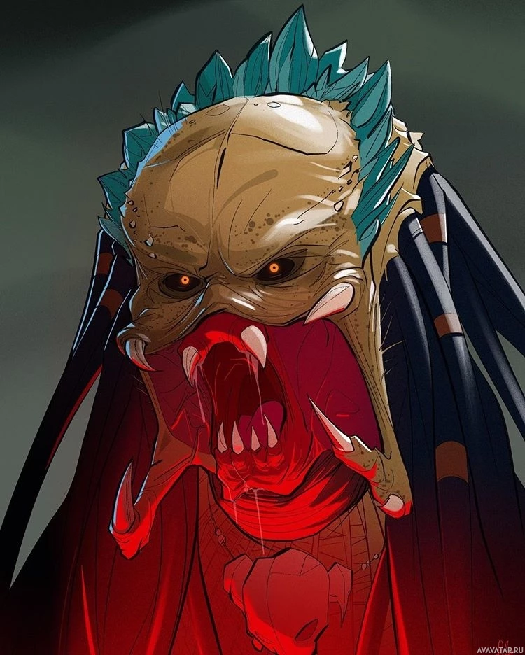 The image shows an illustration of a creature that resembles the Predator from
