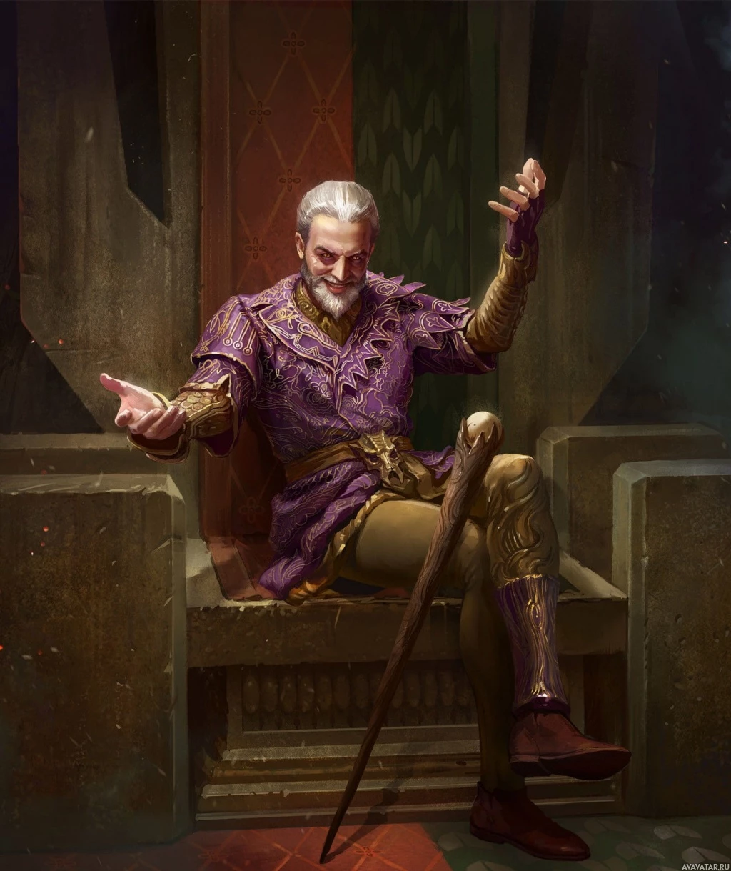 a figure of importance or power within the context of the game. The setting and attire give off an air of antiquity and mysticism, fitting for a character in this