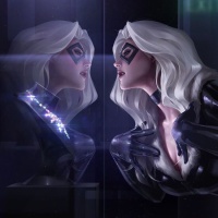 an animated character who appears to be Black Cat, a fictional supervillain from the Marvel Comics universe. She is depicted in